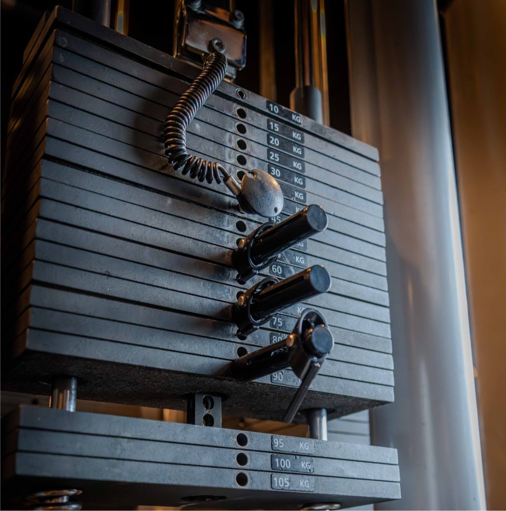 Setze deine normale Gewichtsnadel in das Gewicht, mit dem du beenden willst (also leicht). Das wird die letzte Stufe vom Dropset (wird brennen).