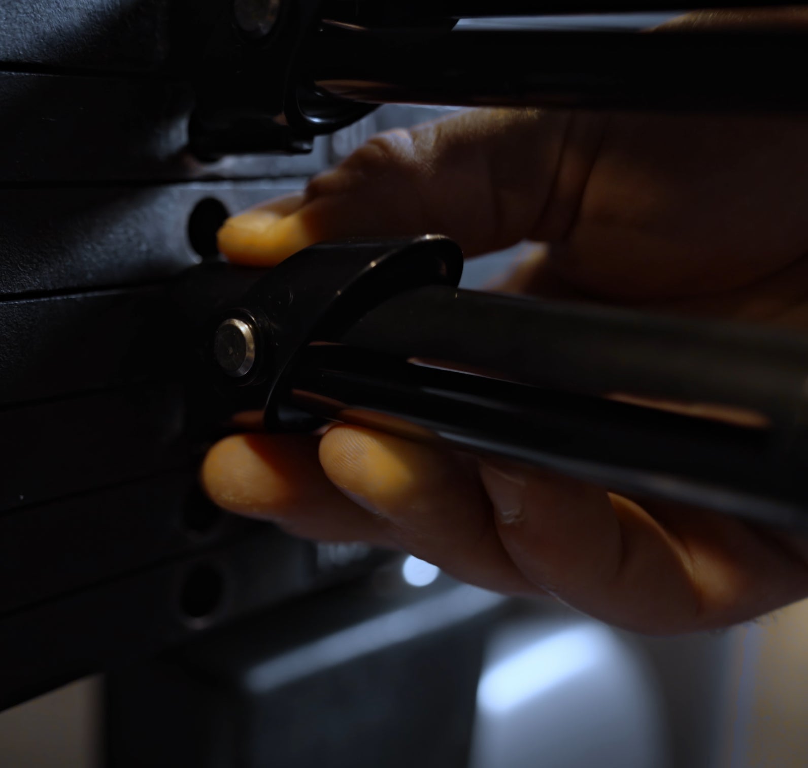 Pin in die Gewichtsplatte stecken
